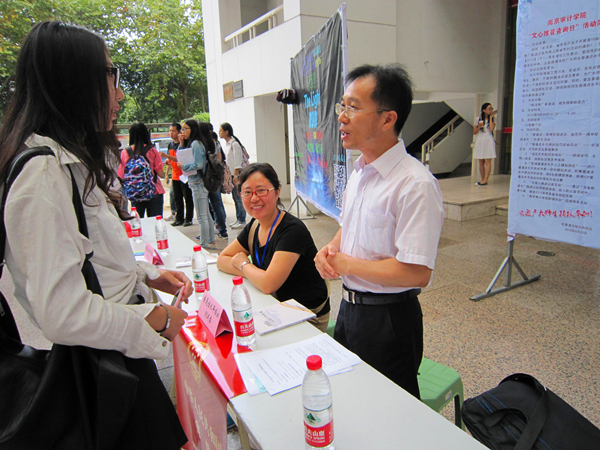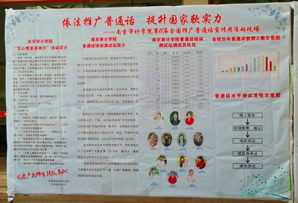 推普活动现场,为盲人诵读公益活动录制台、语言艺术咨询台、语言文字知识咨询台、普通话水平模拟测试台、南京审计万币钱包