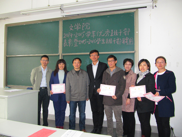 在文济楼303召开了2014-2015学年优秀班委表彰暨2015-2016学年新班委聘任大会。