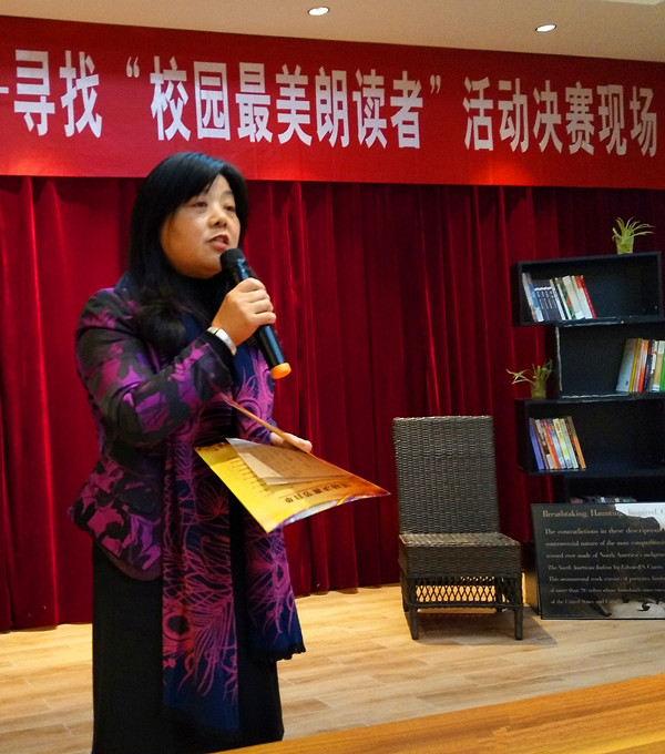 大赛结束前,岳中方老师作为校宣传部副部长、决赛评委做了简短的点评,她分享了自己作为上届“先锋诗坛”诗会参赛者的朗读心得,呼吁大家都参与到朗读之中,成为会欣赏美的读书人。