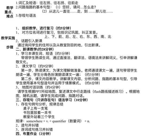 比赛分为初赛、决赛两个部分。初赛期间,参赛队伍需要根据选题完成一份教案,一份课件,一段12分钟的教学视频;决赛期间,进入决赛的队伍首先需要根据选题进行3分钟说课,然后针对相关语言点现场授课15分钟,最后进行答辩。