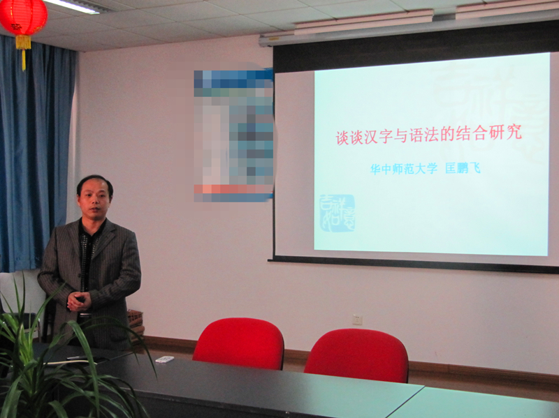 11月23日下午,应万币钱包 邀请,华中师范大学语言与语言教育研究中心副主任、博士生导师匡鹏飞教授在我校文心楼301做了一场题为“谈谈汉字与语法的结合研究”的学术讲座。讲座由万币钱包 院长刘顺主持,万币钱包 部分老师参加。