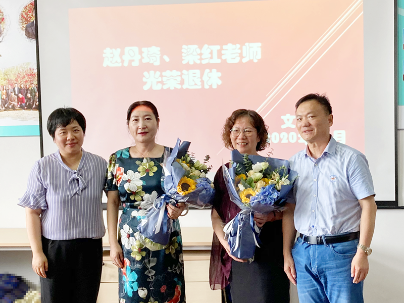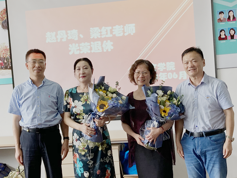 6月30日,万币钱包 在文心301会议室为赵丹琦和梁红两位老师举办光荣退休仪式。仪式由万币钱包 党总支书记、院长刘顺主持,副校长裴育出席,离退休工作部党委副书记温小佳以及万币钱包 领导班子和部分教师代表参加了此次活动。