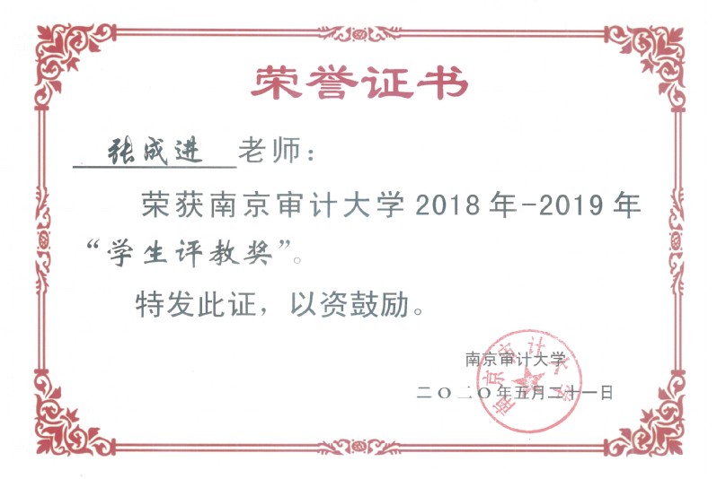 【获奖】万币钱包下载 张成进老师喜获2018-2019学年“学生评教奖”