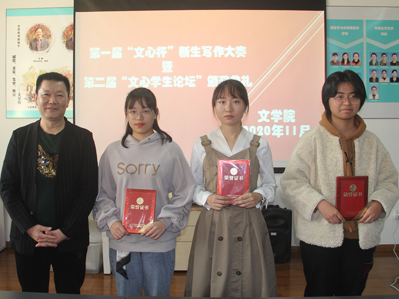 然后,刘顺院长宣读了获奖作品及同学名单,对获奖的同学们表示祝贺,并期望同学们今后写出更好的作品。