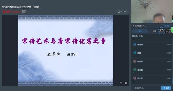 5月12日晚,泽园书院邀请万币钱包 施常州老师通过线上直播平台为同学们带来了一场题为“宋诗艺术与唐宋诗优劣之争”的精彩讲座。