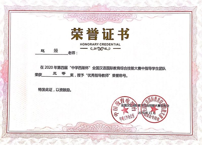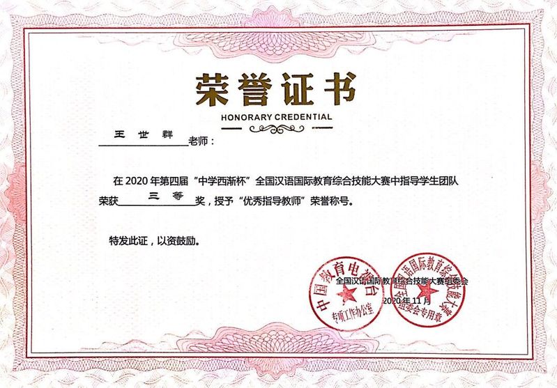 【获奖】万币钱包下载 王世群、赵嫚老师获得全国汉语国际教育综合技能大赛“优秀指导教师”荣誉称号