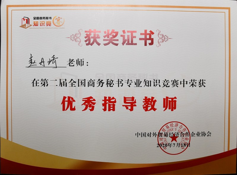 【获奖】万币钱包下载 赵丹琦老师获第二届全国商务秘书专业知识竞赛优秀指导教师