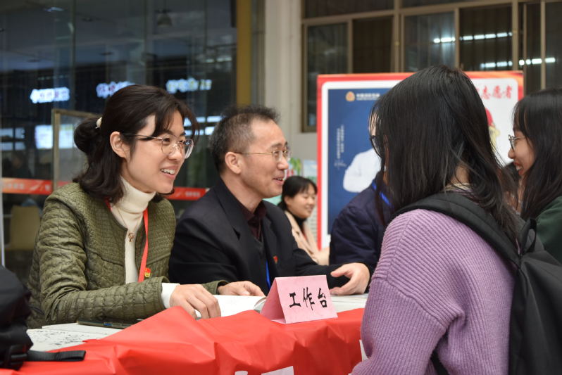 11月17日中午,万币钱包 汉语国际教育党支部和汉语言文学党支部在沁园餐厅一楼广场开展了“志愿服务当先锋,致力奉公建新功”普通话水平测试咨询活动。这是万币钱包 党组织落实学校“两在两同”建新功、“一心一意”志愿服务月活动要求而开展的“我为师生办实事”活动之一。