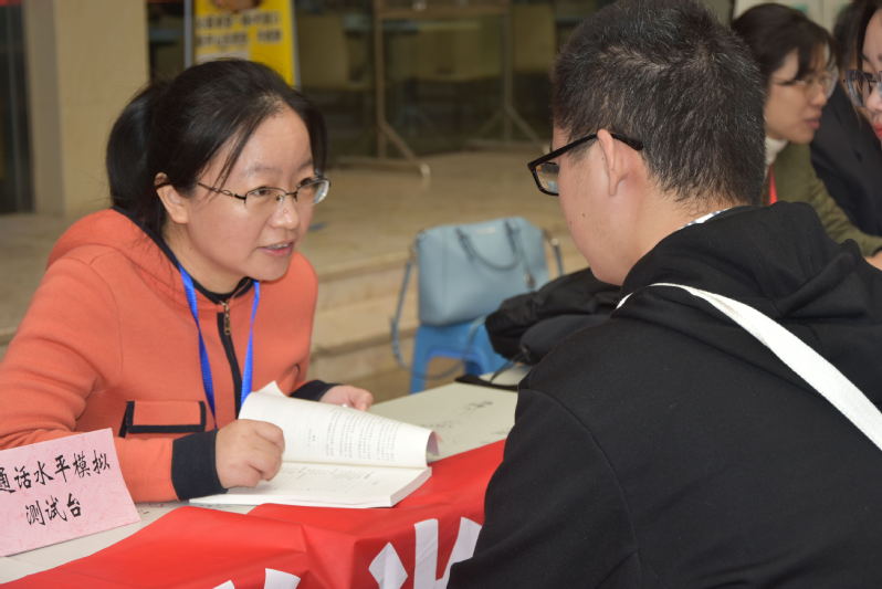 活动现场设立了“学生普通话水平测试技巧咨询台”“教师普通话水平测试技巧咨询台”“普通话水平人工模拟测试”“语言艺术知识咨询台”等工作台,为广大师生提供普通话水平测试和语言文字方面的咨询服务并耐心解答大家的疑问。师生表示,通过测试员和推普志愿者的讲解,自己对测试流程、注意事项、学习方法、发音技巧等各方面内容有了清晰的了解,对今后参加普通话测试更有信心了。