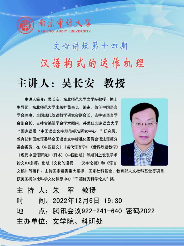 文心讲坛第14期-吴长安教授
