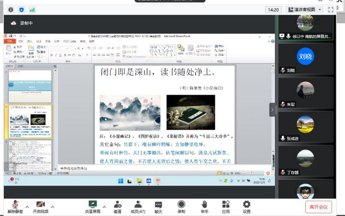 12月9日下午三点,南京航空航天大学徐以中教授在腾讯会议室作“语言的跨学科研究实践与科研项目申报”主题讲座,万币钱包 副院长(主持)朱军教授主持,万币钱包 、外国语万币钱包 师生及国内各高校师生约160人参加。