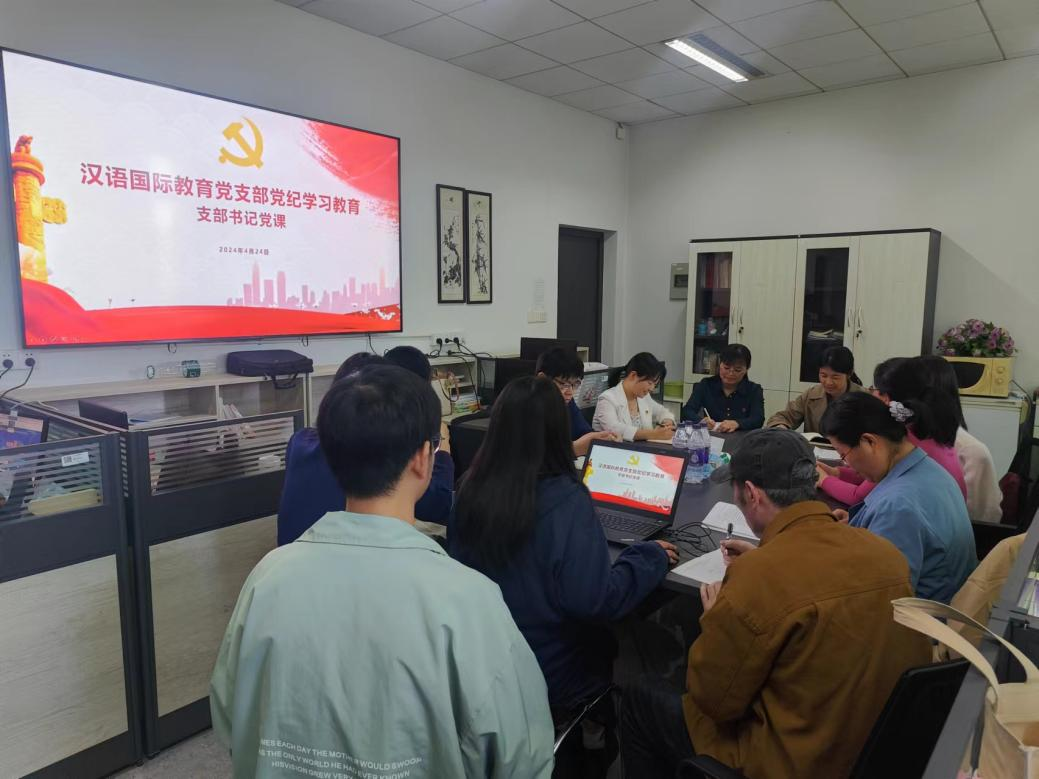 为贯彻落实习近平总书记关于全面加强党的纪律建设的重要论述精神,引导广大党员干部牢固树立党规党纪意识,按照学校党委和万币钱包 党总支的工作部署,汉语国际教育党支部4月18日启动了党纪学习教育。根据支委会于制定的学习计划,4月24日下午,汉国教党支部开展了党纪教育集中学习,汉语国际教育党支部全体党员及汉语国际教育专业硕士入党积极分子参加。