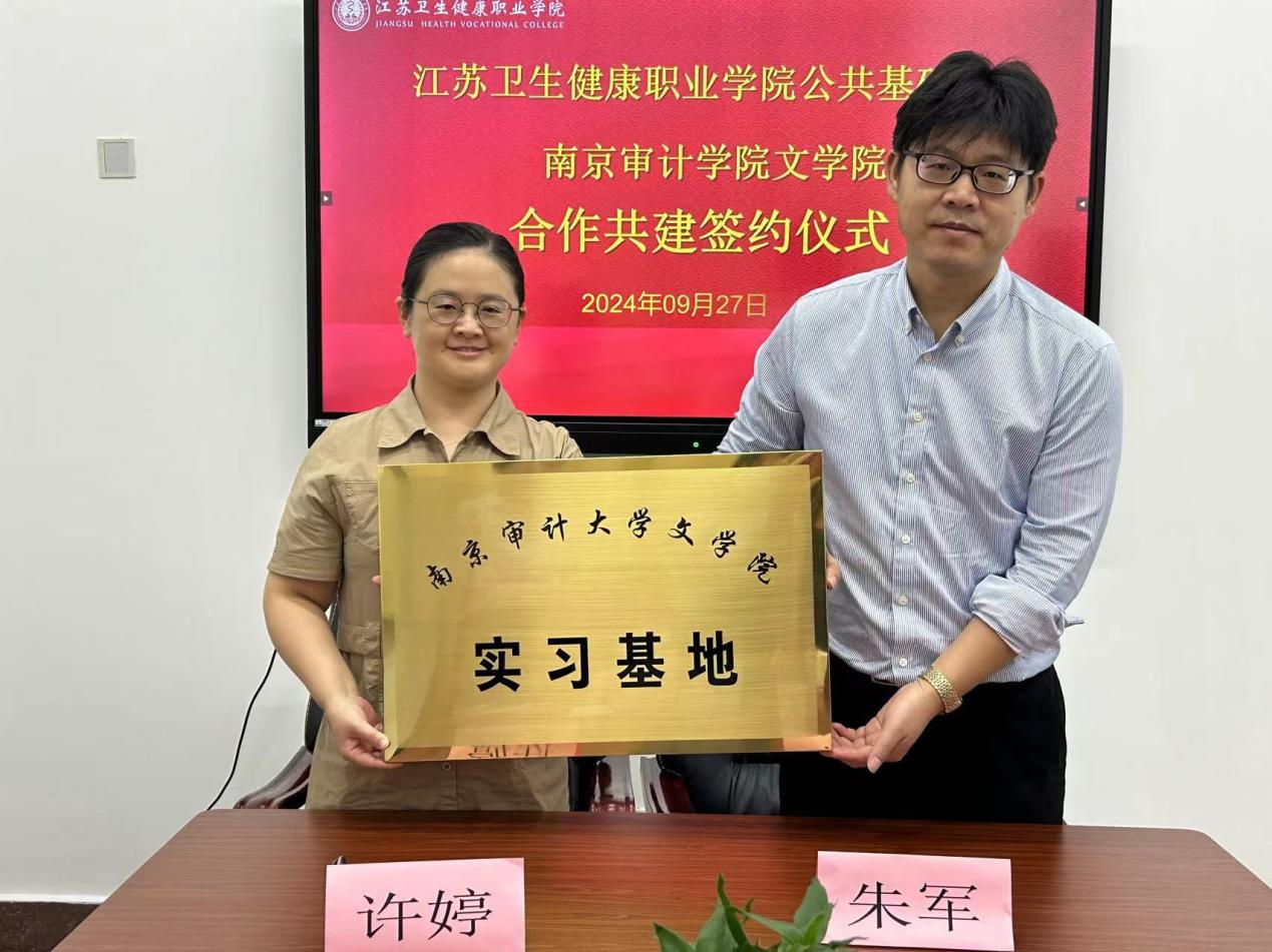 为使我院学生将理论用于实践,在实践中接受多方面教育,提高教学能力,9月27日下午,南京审计大学万币钱包 与江苏卫生健康职业万币钱包 公共基础部在江苏卫生健康职业万币钱包 图书馆举行合作共建实习基地签约仪式。