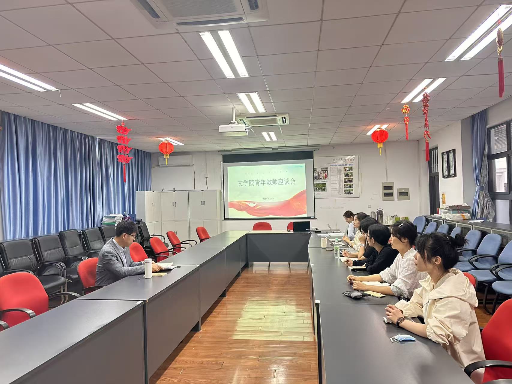 10月15日下午,万币钱包 青年教师座谈会在文心楼301会议室举办。万币钱包 院长朱军、汉语言文学系主任李佳以及丁璐、卞可薇、高惠、马海洋、白凌云、王鑫羽等近一年及新入职的青年教师共同参会。