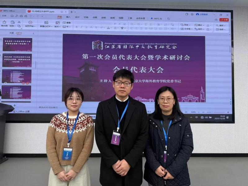 2025年12月28日,江苏省国际中文教育研究会第一次会员代表大会暨学术研讨会在南京大学鼓楼校区召开。来自全...